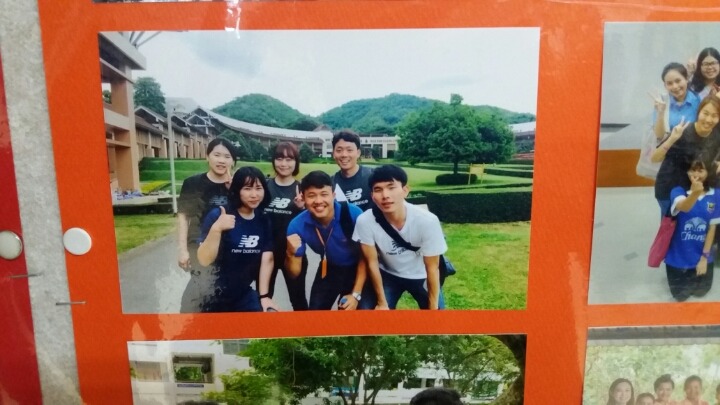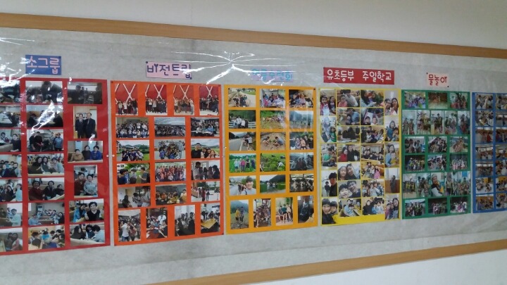 바로 우리교회 아이들과 작년 대학교 사역 사진들이 교회 앞에 있었습니다.