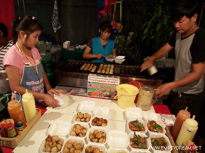 야시장에는 타꼬야끼 파는 노점도 있다. 약간 태국식 타꼬야끼. 일본 정통 타꼬야끼를 생각하고 먹으면 안 된다. 맛이 완전 다르다. ;ㅁ;