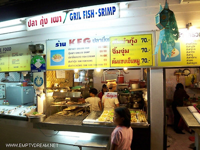 패스트푸드 점이 없어도, 그런 곳에서 파는 것보다 훨씬 더 맛있는 버거를 푸드코트에서 맛 볼 수 있다. 소고기 버거 1개 39밧. 버거킹 와퍼버거보다 더 큰 버거가 나온다. 안타까운 점은, 이 집은 장사를 했다가 안 했다가 한다는 것. 사실 푸드코트에는 장사 하는 집보다 문 닫은 집이 더 많다. 그리고, 7시 부터 영업을 시작한다고는 하지만, 7시 반 넘어서 가야 정상적으로 영업하는 가게들을 만날 수 있다.