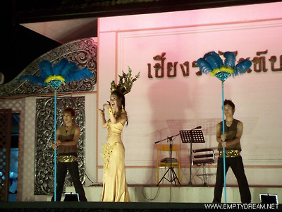 다시 푸드코트. 푸드코트에서는 공연을 하기도 한다. 공연 스케줄 같은 것은 어디에서 써 붙어져 있지 않기 때문에 일찌감치 가서 죽치고 앉아 기다리면 된다. 사진에 보이는 여자는 '태국 좋아~ 태국 너무 좋아~ 태국 너무너무 좋아~'라는 노래를 부르고 내려갔다. 그 후엔 어떤 아저씨 혼자 나와서 통기타 치면서 알아들을 수 없는 태국어로 한 시간 정도 계속 노래 불렀고. 그냥 음식 먹으면서 구경할 만 하다.