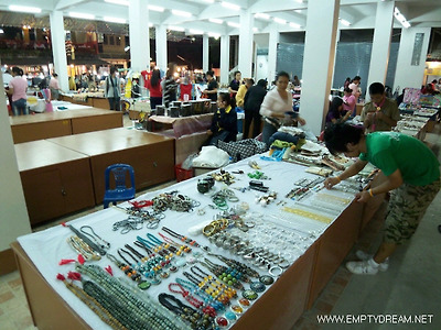 푸드코트에서 야시장으로 통하는 입구 쪽에는 장신구나 기념품 같은 물건들을 팔고 있었다. 여기도 빈 자리가 많아서 약간 썰렁한 느낌. 작은 도시인데다가 비수기라 관광객들이 별로 없어서 그런 것 같다.