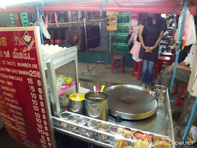 메뉴판에는 팬케익이라고 써 놨지만, 사실은 로띠 가게. 라오스 길거리에서 파는 것보단 좀 맛이 없었지만, 먹을 만 하다. 들어가는 재료들을 잘 조합하니까 한국의 호떡같은 맛이 나기도 했다.