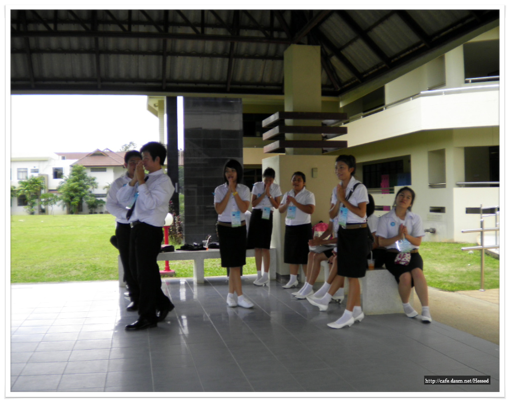 저는 태국에서 신입생들이 선배나 교수님에게 먼저 와이 (태국식 손 합장해서 인사하는 것)하는 것을 보았지만