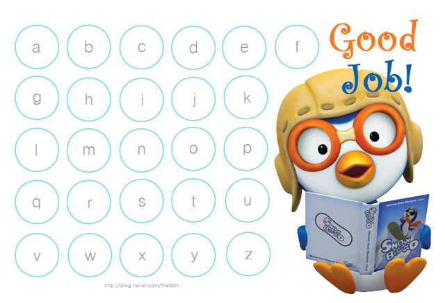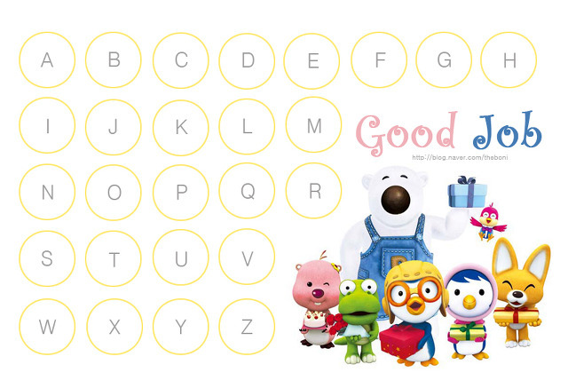 ***뽀로로 그림 알파벳이 있는 스티커판---위에 있는 그림과 같음