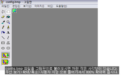 들어가시면 'region.ini' 이란 구성설정 파일과 'config.bmp' 이미지 파일이 있을 겁니다. 다른 건 신경 쓰지 마시고 'config.bmp' 파일을 그림판으로 불러 오시면 됩니다. 그림판으로 불러오시면,