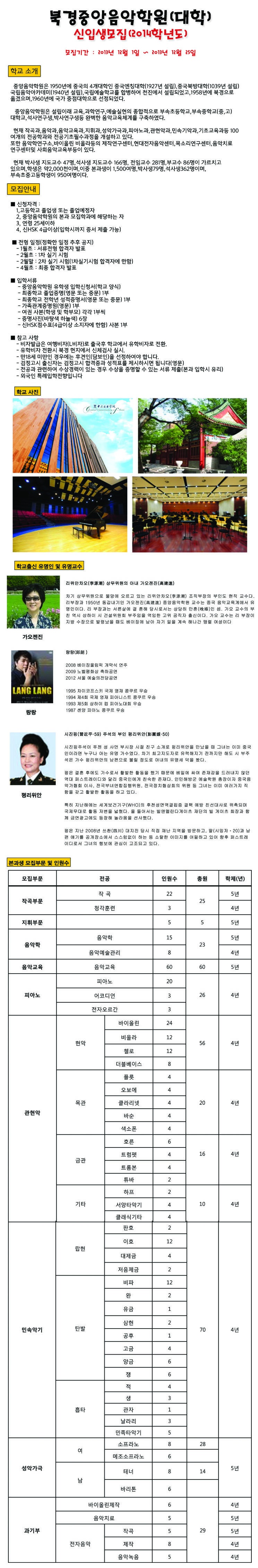 중국에서 최고의 음악대학인 북경중앙음악학원(대학) 신입생 모집 작성자하오하오|작성시간13.11.26|조회수19 목록 댓글 0 글자크기 작게가 글자크기 크게가 중국에서 최고의 음악대학인 북경중앙음악학원(대학)을 소개합니다 2014학년도 본과생(신입생)을 모집합니다 http://cafe.daum.net/bjcccm 다음검색 현재 게시글 추가 기능 열기 북마크 공유하기 신고 센터로 신고 댓글 댓글 0 댓글쓰기 답글쓰기 댓글 리스트