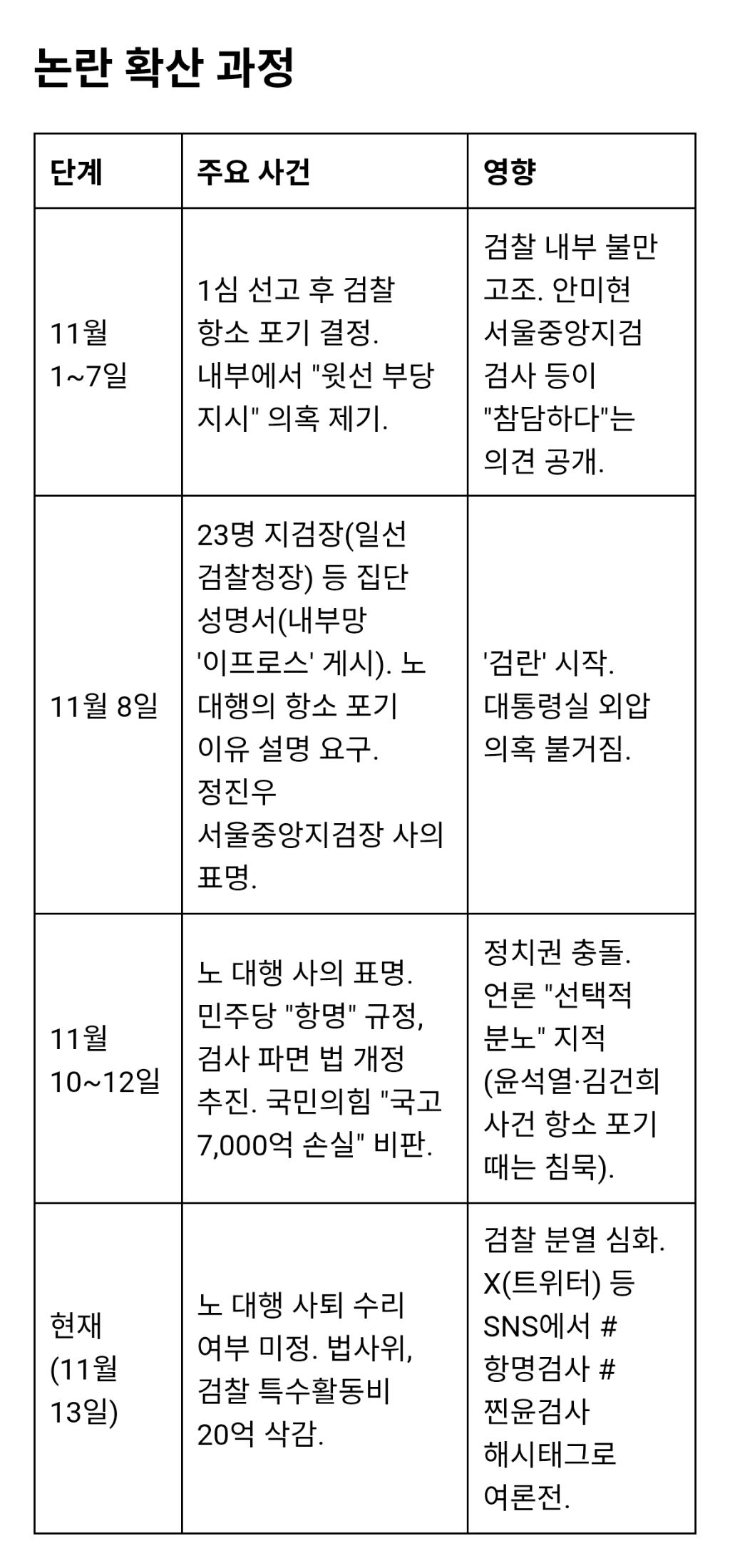 최근(2025년 11월) 1심 판결 후 검찰의 '항소 포기' 결정으로 인해 내부 반발이 폭발하며 '검란(검찰 반란)'으로 불리는 사태가 발생했습니다.