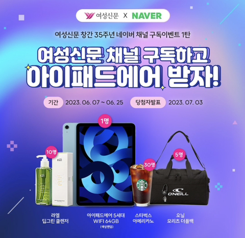 #여성신문 네이버 뉴스 채널 구독하고 #아이패드에어 받아가세요!