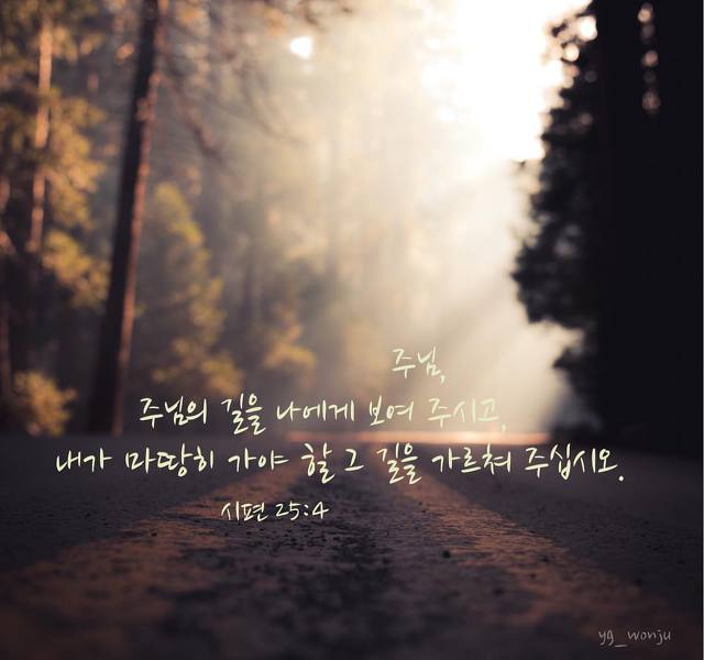 주의 진리로 나를 지도하시고 가르쳐 주십시오. 나는 종일 주님만을 기다립니다. 04. 다윗은 하나님을 알고 있습니다. 영원 전에서부터 하나님의 긍휼하심과 자비로우심이 변함이 없다는 것을 알고 있습니다. 겸손한 사람을 공의로 인도하시며, 겸비한 사람에게는 하나님의 뜻을 가르쳐 주심을 알고 있습니다. 하나님의 언약과 계명을 지키는 사람을 신실과 사랑으로 인도하심도 알고 있습니다. 다윗은 하나님을 기다립니다. 05. 그리고 다윗은 젊은 날 자신이 지은 죄와 실수를 하나님 앞에 다시금 말씀 드리며, 이제 그 죄와 실수를 기억하지 마시고 주의 자비로우심과 선하심으로만 기억해 주실 것을 간절히 간구합니다. 하나님의 긍휼과 자비로우심에 근거하여 자신이 지은 죄로 인한 죄책감이 억압하지 않기를 기도합니다. 다윗은 기도합니다. 06. 죄와 허물을 가려 주시는 분은 여호와 하나님이십니다. 죄와 허물을 가리기 위해 우리의 노력이나 공로가 필요한 것이 아니며, 우리의 선행이나 고행이 필요한 것이 아닙니다. 다만, 하나님의 긍휼하심과 자비로우심 앞에 회개하며 하나님의 사랑에 안기는 것 뿐입니다. 다윗은 하나님을 신뢰합니다. 07. 신실하신 하나님, 구원의 하나님, 긍휼과 인자가 영원하신 하나님, 죄는 기억하지 않으시는 하나님 그러나 죄인을 사랑하시는 하나님, 피난처가 되신 하나님, 성실과 정직으로 당신의 백성을 보호하시는 하나님... 하나님께 나아갑니다. 하나님을 의지합니다. 하나님만이 변함없는 소망입니다. 다윗은 하나님을 찬양합니다. 08. 하나님을 바라는 것은, 하나님의 때를 잠잠히 기다리는 것입니다. 하나님을 바라는 것은, 하나님의 선하심과 인자하심에 맡기는 것입니다. 그래서 하나님의 지혜를 인정하고 그대로 응답하는 것입니다. 마음의 근심을 모두 씻어 주시는 하나님, 죄로 인한 죄책감을 모두 덮어 주시는 하나님, 나와 가정 그리고 나라와 민족을 구원하시는 하나님을 찬양합니다. ♣ 삶의 한 가운데... 내 영혼을 지켜 나를 구원하소서 내가 주께 피하오니 수치를 당하지 않게 하소서 내가 주를 바라오니 성실과 정직으로 나를 보호하소서 (시 25:20-21)