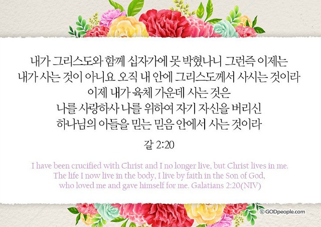 주의 믿음 안에 살리 내가 그리스도와 함께 십자가에 못 박혔나니 그런즉 이제는 내가 사는 것이 아니요 오직 내 안에 그리스도께서 사시는 것이라 이제 내가 육체 가운데 사는 것은 나를 사랑하사 나를 위하여 자기 자신을 버리신 하나님의 아들을 믿는 믿음 안에서 사는 것이라 (갈 2:20) 생명이신 그리스도가 내 안에 거하십니다. 그분을 믿는 믿음으로 나는 사는 것입니다. 참으로 주님을 따라서 주님에 의해서 살게 되면 우리는 의를 이루게 되어 있습니다. 죄를 안 지으려고만 생각하지 마십시오. 자신을 그리스도로 꽉 채우십시오. 그리고 그분을 사랑하려는 마음을 가지십시오. 그리스도를 사랑하면할수록 우리는 그 주님을 통해서 놀라운 의를 이루게 되는 것입니다. 그런데 만약 우리가 율법주의로 돌아가게 되면 우리는 이런 복음적 삶의 능력을 부인하게 됩니다. 율법주의와 타협하게 되면 그것은 하나님의 은혜를 무효화시키는 결과를 초래합니다. "내가 하나님의 은혜를 폐하지 아니하노니 만일 의롭게 되는 것이 율법으로 말미암으면 그리스도께서 헛되이 죽으셨느니라" (갈 2:21) 하나님은 은혜로 예수 그리스도를 이 세상에 보내주셨습니다. 하나님은 은혜로 예수 그리스도께 내 죄를 짊어지우셨습니다. 하나님은 은혜로 나에게 새로운 생명을 부여하기 위해서 다시 그리스도를 살리셨습니다. 하나님은 은혜로 예수 그리스도의 영을 통해서 내 마음 속에 거하십니다. (이동원 목사) 사람들의 습관을 한 번 고치는 데 무척 힘이 듭니다. 습관은 사람을 규정합니다. 인간은 습관으로 자신을 구성합니다. 악은 악의 습관으로 선은 선의 습관으로 정의는 정의의 습관으로 불의는 불의의 습관으로 한 인간을 규정합니다. 사람의 생각을 바꾸는 것은 금방 될 수 있습니다. 그러나 습관을 바꾸는 데는 생각의 교정이 있고난 후에도 수많은 시간의 몸부림 후에 겨우 조금의 진척이 있을 뿐입니다. 습관은 인격이요, 습관은 자신의 존재 모습입니다. 내가 어떤 양식으로 존재 하느냐는 나의 습관이 어떤 것이냐로 알아 볼 수 있습니다. 습관을 바꾸지 않으면 삶의 변화는 없습니다. 습관이 먼저 바뀌어야 삶이 변화됩니다. 갈 2:20은 율법과 복음에 관한 내용입니다. 복음적 그리스도인은 율법에서가 아니라 그리스도에 대한 믿음으로 의로와진다는 선언입니다. '율법을 향하여 죽음을 선포하고 하나님을 향하여 살려함이라' 율법의 지배에서 벗어나서 하나님의 지배로 옮겼다는 선언입니다. 그러면 우리에게 있어서 율법은 무엇입니까? 우리가 죽음을 선포해야할 것은 무엇입니까? 우리가 새로운 탄생을 준비해야 할 것은 또 무엇입니까? 먼저 과거의 나에 대해 죽음을 선포해야 합니다. 내가 아닌 그리스도입니다. 나는 죽었습니다. 우리 신앙인은 반복적인 죽음을 통해서 순도 높은 신앙을 유지하고 발전시키게 됩니다. "나는 날마다 죽노라'고 바울은 말합니다. "형제들아 내가 그리스도 예수 우리 주 안에서 가진바 너희에게 대한 나의 자랑을 두고 단언하노니 나는 날마다 죽노라" (고전15:31) 죽음의 선언을 한다는 것이 얼마나 어려운지 알고 있습니다. 새로운 습관은 과거의 습관을 죽이지 않고서는 형성되지 않습니다. 이것이 어찌 진통 없이 될 일입니까? 과거의 내가 죽는 것은 진통을 가져옵니다. 도전이요, 각성입니다. 해산하는 수고가 있습니다. 각질을 깨는 아픔이 있습니다. 껍질을 뚫는 아픔이 있습니다. 그렇습니다. 근본적으로 아픔입니다. 십자가에 못을 밖는 아픔입니다. 손의 습관이 된 것은 손에 못을 밖음으로 과거의 세속적 습관을 장사지낼 수 있습니다. 발로 행하던 길(行)의 습관은 발에 못을 밖음으로서 과거의 어두움의 길을 장사지낼 수 있습니다. 생각으로 악에의 관습에 젖어들던 것은 머리에 가시관을 씌워 찌르며 피를 흘림으로 악에의 지향을 장사지낼 수 있는 것입니다. 그리고, 나는 이제 그리스도와 함께 십자가에 못박혔습니다. 달려서 죽었습니다. 처형되었습니다. 사형선고를 내렸습니다. 청산했습니다. 존재가 소멸 되었습니다. 이제 나의 과거는 없습니다. 살아있다면 그것은 이제 내가 아니라 그리스도입니다. 그리스도께서 내 안에 사시는 것입니다. 나의 나머지 삶은 그리스도가 사시는 것입니다. 나의 의지, 나의 계획, 나의 주권, 다 포기 되었습니다. 그리스도께 헌신된, 그리스도에 의해 사용되는, 그리스도의 소유물입니다. 순도 높은 신앙은 과거의 율법의 나에 대해 죽음을 선언하고, 자신을 처형하고 그리스도의 삶을 사는 것입니다. 이것은 벗고 입는 행위로 표현하고 있습니다. 벗음과 입음을 반복함으로 순도 높은 신앙은 이뤄집니다. 끊임 없이 벗고 입는 생활입니다. 무엇에 대해 벋고 입는 것입니까? "밤이 깊고 낮이 가까웠으니 그러므로 우리가 어두움의 일을 벋고 빛의 갑옷을 입자"(롬13:12) "옛사람과 그 행위를 벋어버리고 새사람을 입었으니, 이는 자기를 창조하신 자의 형상을 좇아 지식에 까지 새롭게 하심을 받는 자니라"(골3:9-10) "너희는 유혹의 욕심을 따라 썩어져 가는 구습을 좇는 옛사람을 벋어 버리고 오직 심령으로 새롭게 되어 하나님을 따라 의와 진리의 