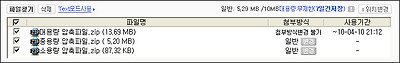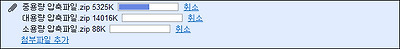 각 메일에 대용량 파일을 첨부했을 경우 화면을 캡쳐해 보았습니다. 파일은 10메가가 넘는 대용량 압축파일, 5메가가 넘는 중용량 압축파일, 1메가가 되지 않는 소용량 압축파일 세가지를 첨부해 보았습니다.