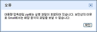 [그림4] 구글 G메일의 파일 첨부 오류 메세지
