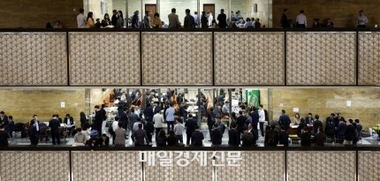 21대 국회의 마지막 국정감사가 시작된 10일 서울 여의도 국회 복도에서 피감기관 공무원들이 분주하게 움직이고 있다.
