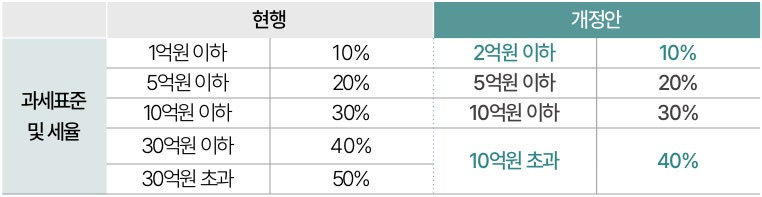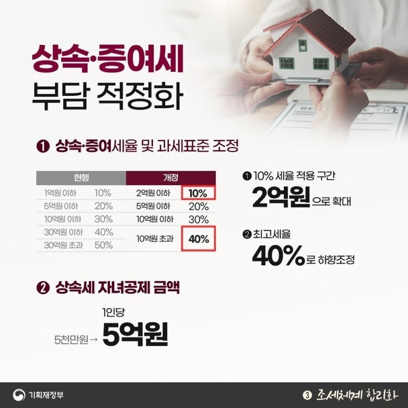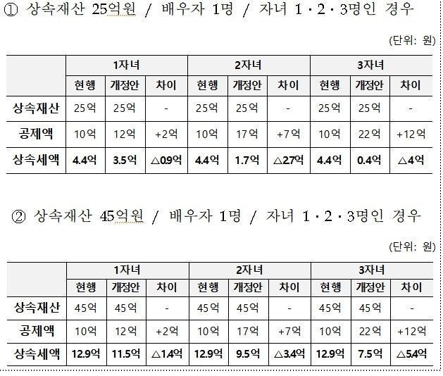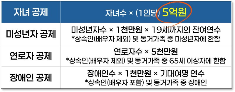 ①자녀공제를 현행 1인당 5000만 원에서 5억원으로