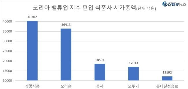 코리아 밸류업 지수 편입 식품사 시가총액. [자료=더밸류뉴스]