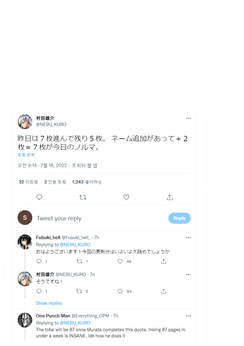 원펀맨 리메이크 213화 월요일 작성자물망초|작성시간22.07.18|조회수1,320 목록 댓글 0 글자크기 작게가 글자크기 크게가 어제는 7장 더 나아가서 나머지 5장.콘티추가 있어서 +2장=7장이 오늘의 할당량. 원고는 이번이 막바지라는 대답 원펀맨 리메이크 213화 월요일 다음검색 현재 게시글 추가 기능 열기 북마크 공유하기 신고 센터로 신고 댓글 댓글 0 댓글쓰기 답글쓰기 댓글 리스트