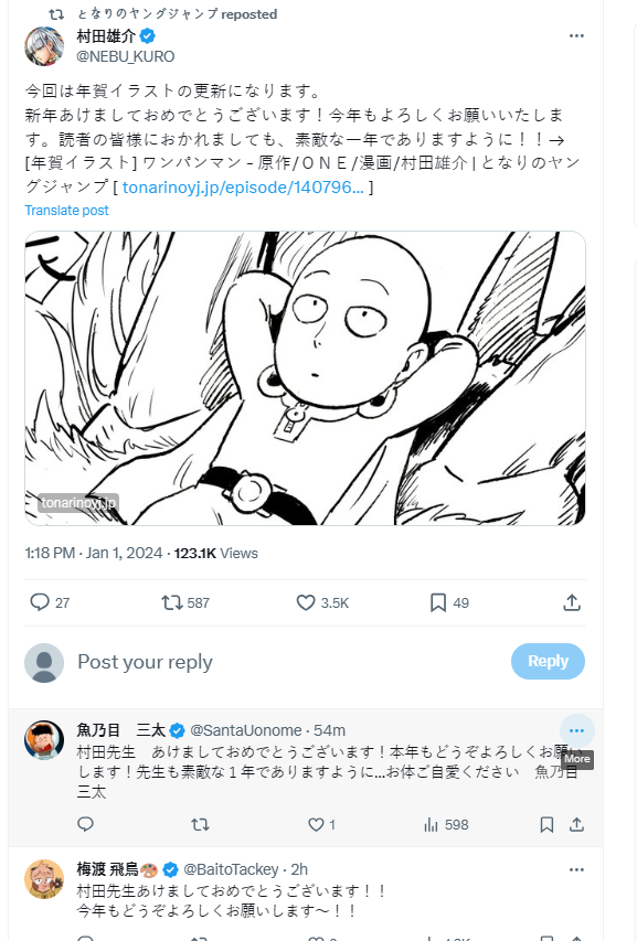 [연하 일러스트] 원펀맨 - 원작 / ONE / 만화 / 무라타 유스케 | 이웃의 영점프