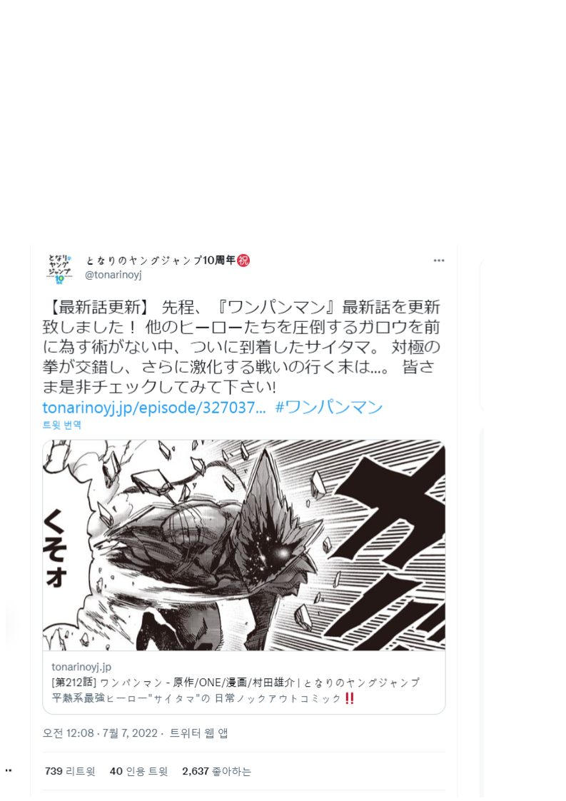 [최신화 갱신] 조금 전, 원펀맨 최신화를 갱신했습니다!