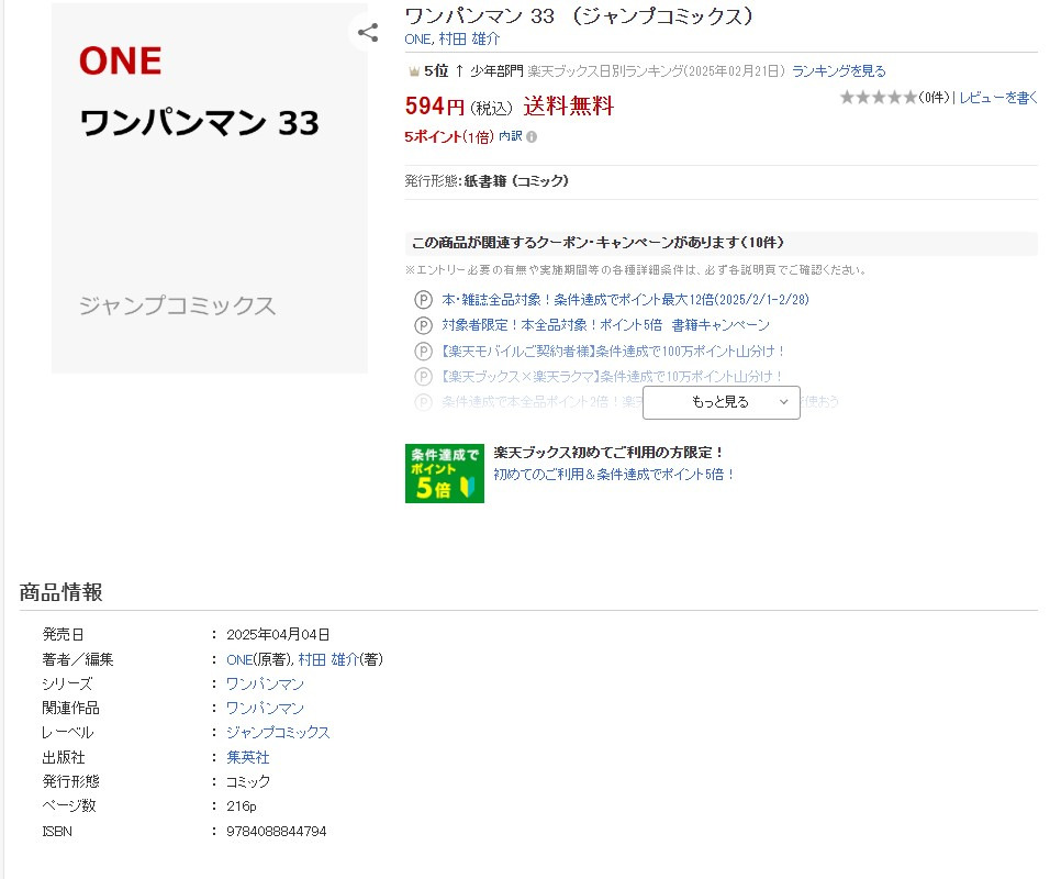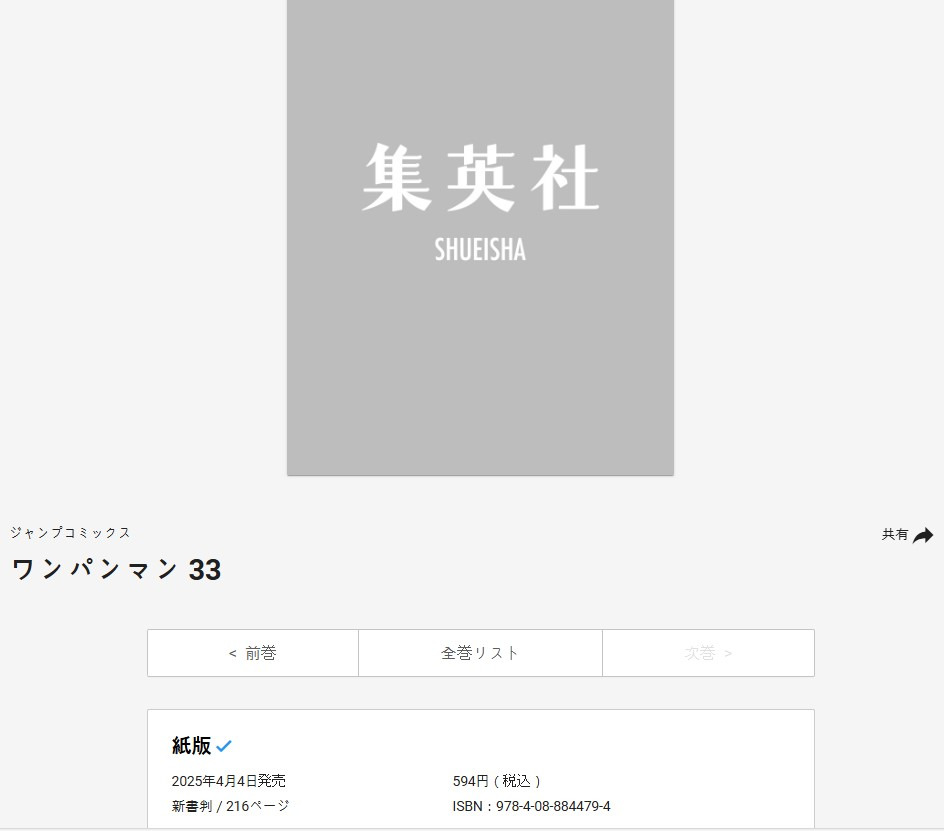 원펀맨 단행본 33권 분량, 번외 작성자미나리|작성시간25.02.22|조회수527 목록 댓글 0 글자크기 작게가 글자크기 크게가 원펀맨 단행본 33권 분량, 번외 는 번외 약 6P 다음검색 현재 게시글 추가 기능 열기 북마크 공유하기 신고 센터로 신고 댓글 댓글 0 댓글쓰기 답글쓰기 댓글 리스트