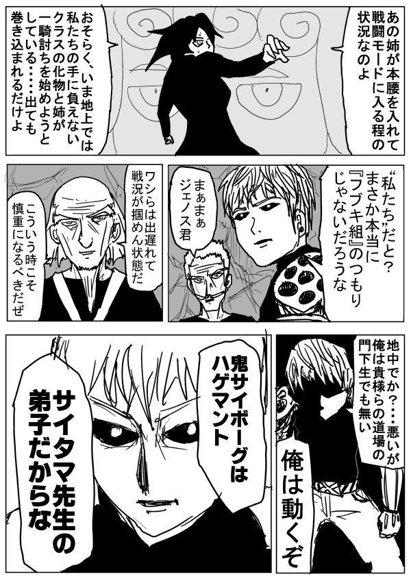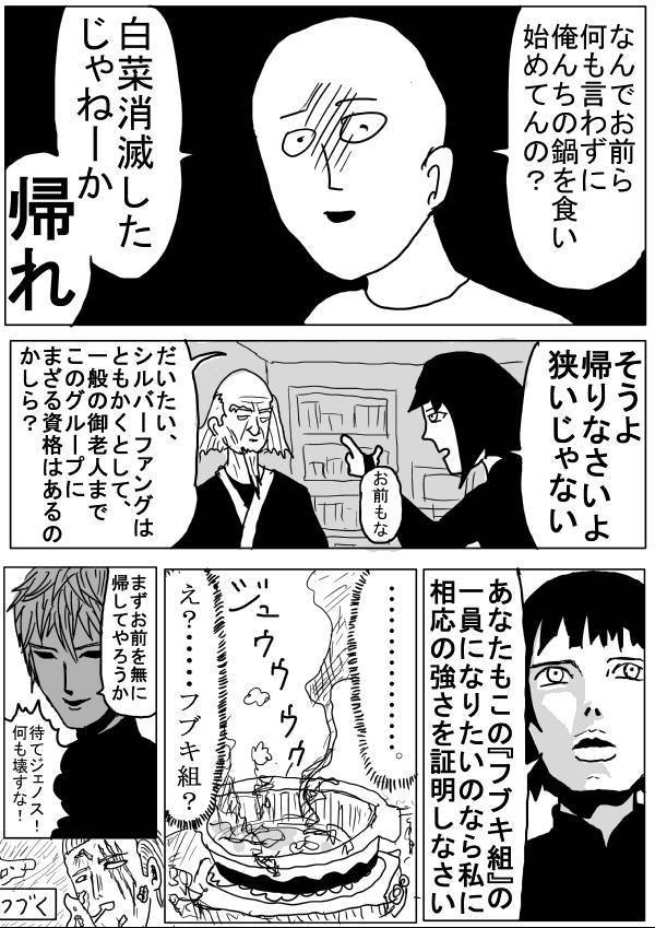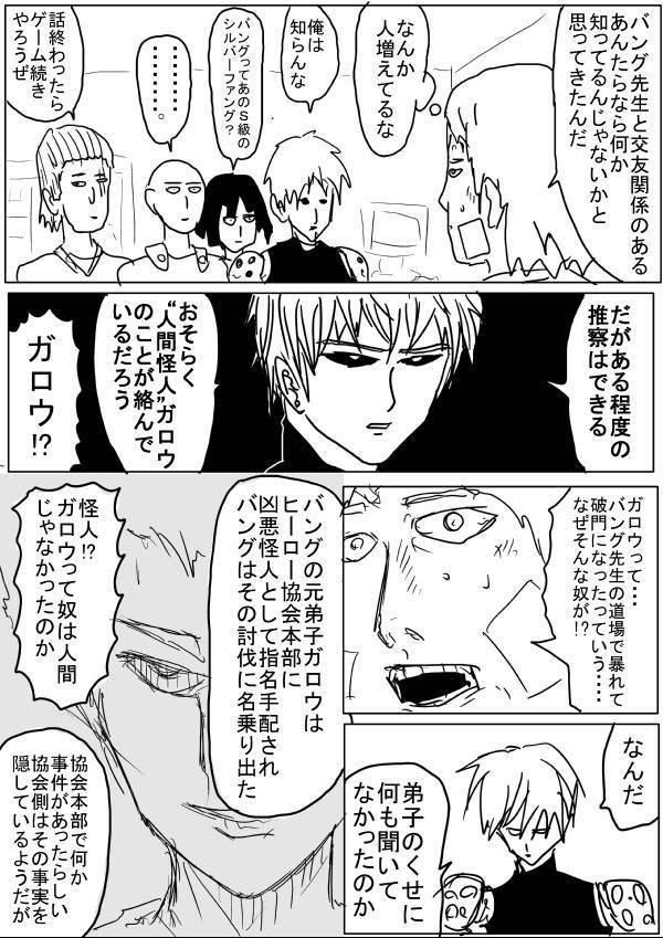55격 - 가로우 놓친 다음에 모여있는 장면이에요, 원작에서는 사이타마 집에 찾아오는 부분 생략되고 왠지 처음부터 집안에 있었죠