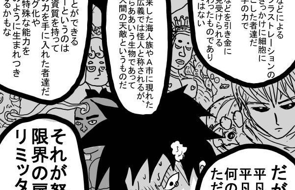 ( 역주 : 지너스 설명 장면에서 제노스 숨겨 놓았던 것은 딱히 ONE의 별로 지시나 언급이 있던 것은 아니고, 오히려 ONE 콘티는 그냥 원작 연재판 그대로 보냈다고 하는 것이 밝혀 졌네요. 제노스를 숨겨서 그리신 것은 그냥 무라타 센세 판단이셨던 것이고요 ^^;; 다만 원작 연재판에서도 괴인측에 제노스가 있었다는 것은 여전히 신경 쓰이는 부분이긴 하지만요. 숨어있는 제노스에 원작 이상의 의미부여는 필요 없을 것 같네요 )