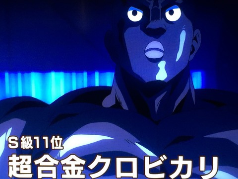 S급 11위의 마초"초합금 검은빛". 괴인의 러시를 받아도 타격 0과 경이의 방어력을 자랑하는 히어로.