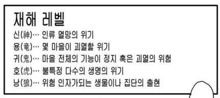 그 재해 레벨은 늑대, 호랑이, 귀신, 용, 신의 5단계로 되어 있습니다.