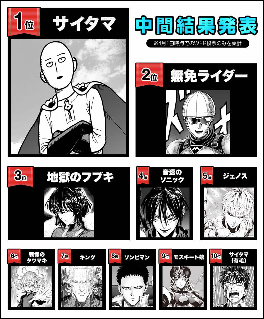 [[인물탐구]]원펀맨 캐릭터 인기투표 중간결과 4/3