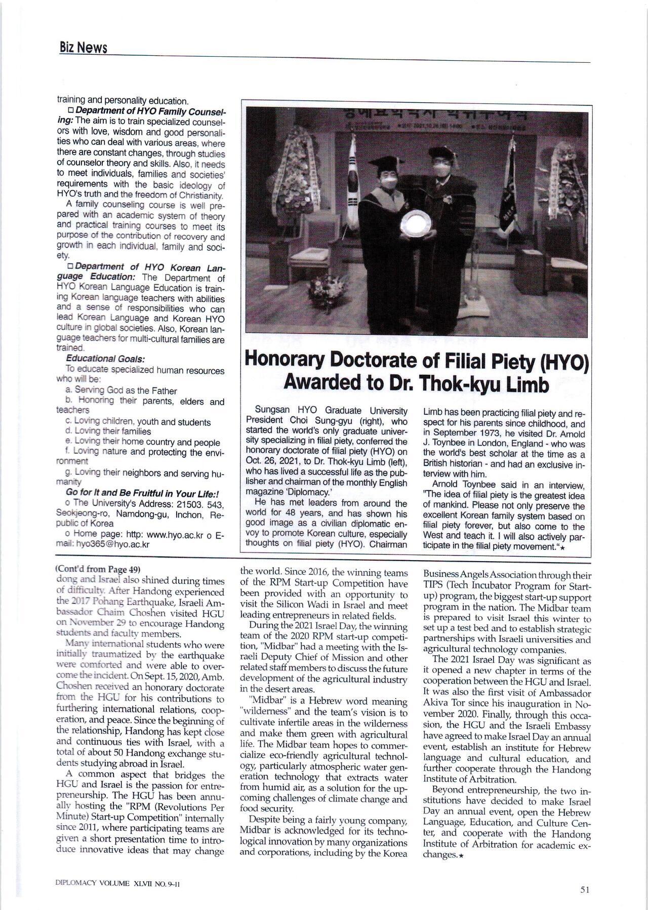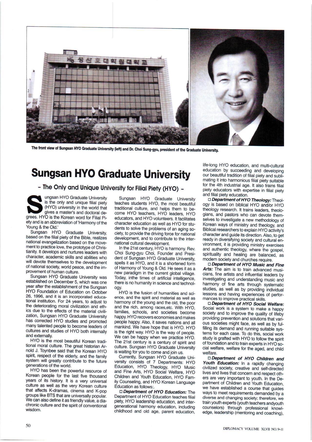 "Diplomacy(외교)" English Magazine-성산효대학원대학교 특집 기사