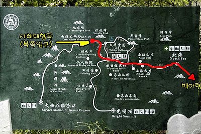 이 사진 아래의 계곡이 서해대협곡이다. 이 계곡의 밑바닥까지 하염없이 내려갔다가 다시 꼭대기까지 올라와야 한다.