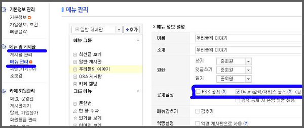 다음검색/서비스공개를 하시면 다음에서 해당 게시판의 글이 검색이 되어지는데요
