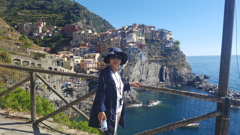 와인 외에도 이 지역에서 유명한 음료, ‘그라파 와인’ 제조과정에서 사과즙을 짜고 남은 찌꺼기로 만든 브랜디, 그리고 레몬첼로가 있다. 1998년 이탈리아 환경부는 자연 환경을 보호함과 동시에 지역 경제 개발을 촉진하기 위해 친퀘테레(Cinque Terre)를 해양보호지역으로 지정했으며 1999년 생태학적 균형과 풍경을 보호하고 지역의 인류학적 가치를 지키기 위해 친퀘 테레 국립공원(Parco Nazionale delle Cinque Terre)이 설립되었다고, 그럼에도 불구하고 재배 및 테라스 벽 보존에 대한 관심이 줄어들면서 지역에 장기적인 위협이 된다는 이유로 세계 유적재단(World Monuments Fund)에 의해 2000년과 2002년 세계 유적지 관리목록(2000 and 2002 World Monuments Watch)에 등재되었단다. 이 기구는 친퀘테레의 보존에 대한 연구를 지원하기 위해 ‘아메리칸익 스프레스‘에서 교부금을 확보했으며, 연구에 따라 지역 관리 계획을 만들었단다. 우리는 해안 열차를 타고 마나롤라(Manarola)역에서 내려 아름다운 바다가 보이는 마을로 갔다 다섯 마을 중 가장 유명한 한 개 만 중심으로 보고 왔다 다른 길로 가는 중간에 산사태로 인해 막혀 더 이상 갈수 가 없었고, 저곳이 제일 좋은 곳이란 현지 가이드의 이야기를 들었다 사실 여러 곳을 가서 보는 것도 중요하지만 시간에 쫓기면 한군데도 제대로 볼 수 없다고…….