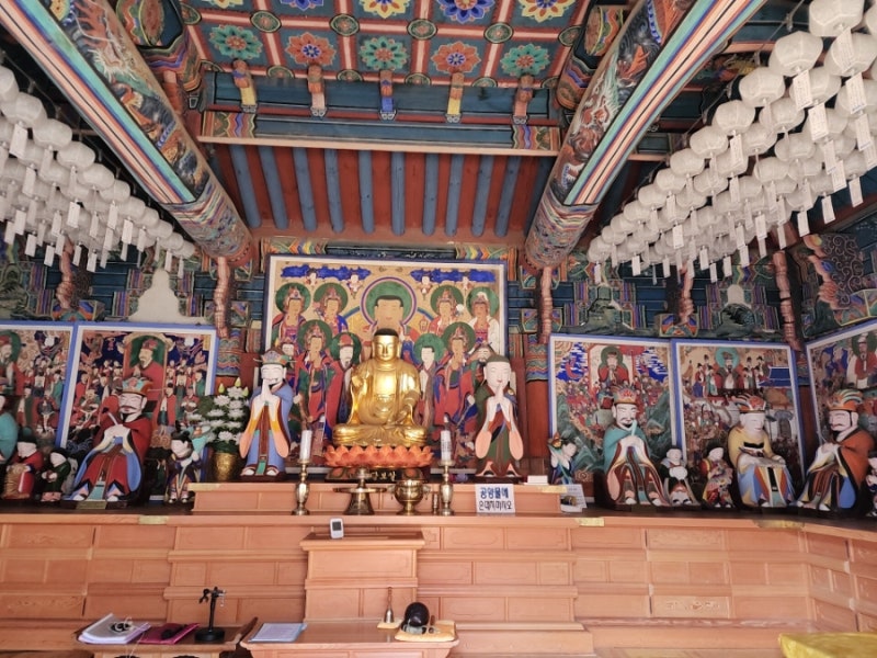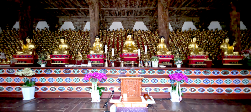 안쪽에는 부처님을 중심으로 좌우에 부처님의 제자인 16나한상을 모시고 있습니다.