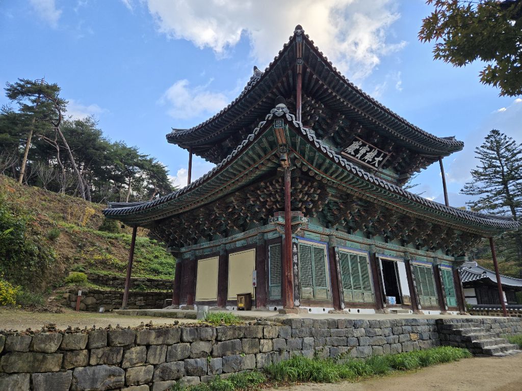 규모는 정면 5칸·측면 3칸이며 지붕은 옆면에서 볼 때 여덟 팔(八)자 모양을 한 팔작지붕입니다. 지붕 처마를 받치기 위해 장식하여 짜은 구조가 기둥 위뿐 아니라 기둥 사이에도 있는 다포 양식입니다.
