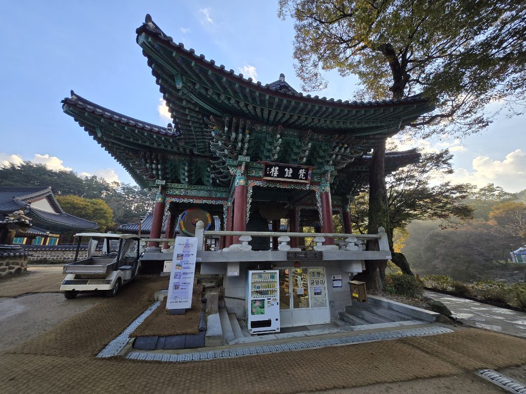 범종은 큰 청동 종으로, 사찰 전체에 소리를 울려 퍼지게 하는 용도이며