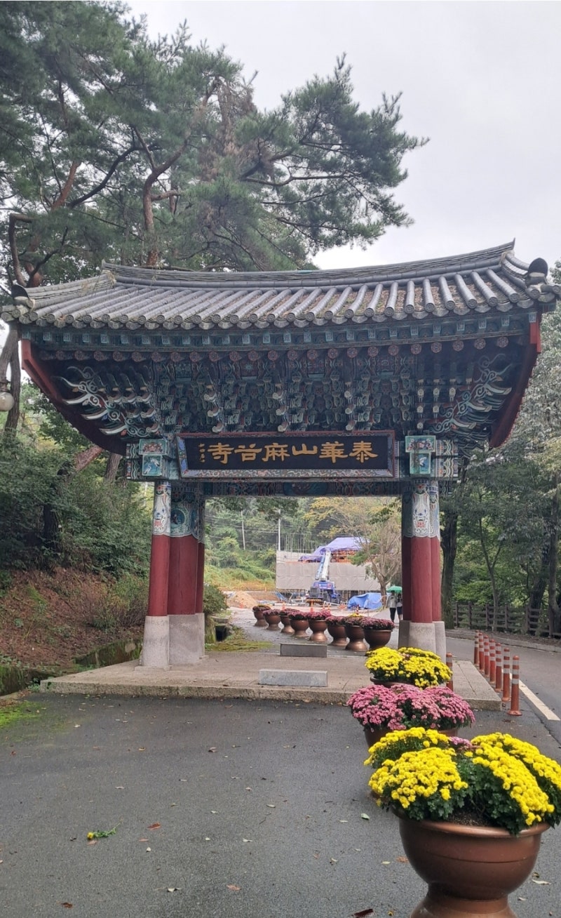 泰華山 麻谷寺(태화산 마곡사)” 편액은 근 현대 서예가인 여초 김응현(如初 金膺顯 1927~2007)이 2007년에 쓴 글씨이며 ‘如初居士(여초거사)’ 라고 쓰여져 있습니다.