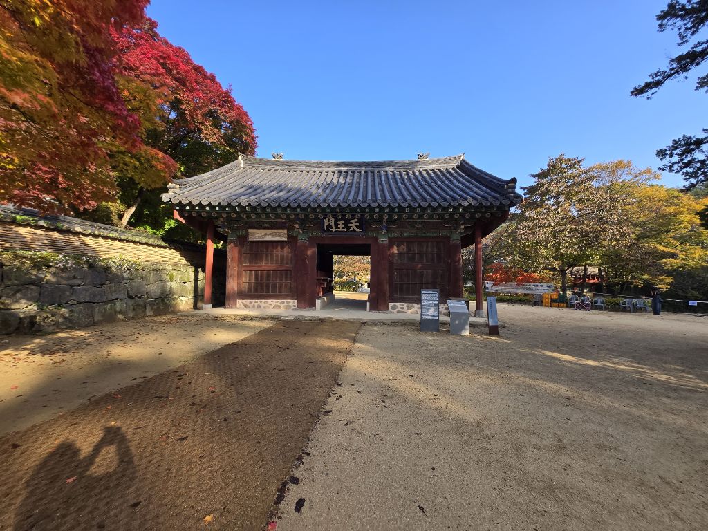 마곡사 천왕문은 정면 3칸에 측면 2칸으로 겹처마 맞배지붕입니다ㆍ