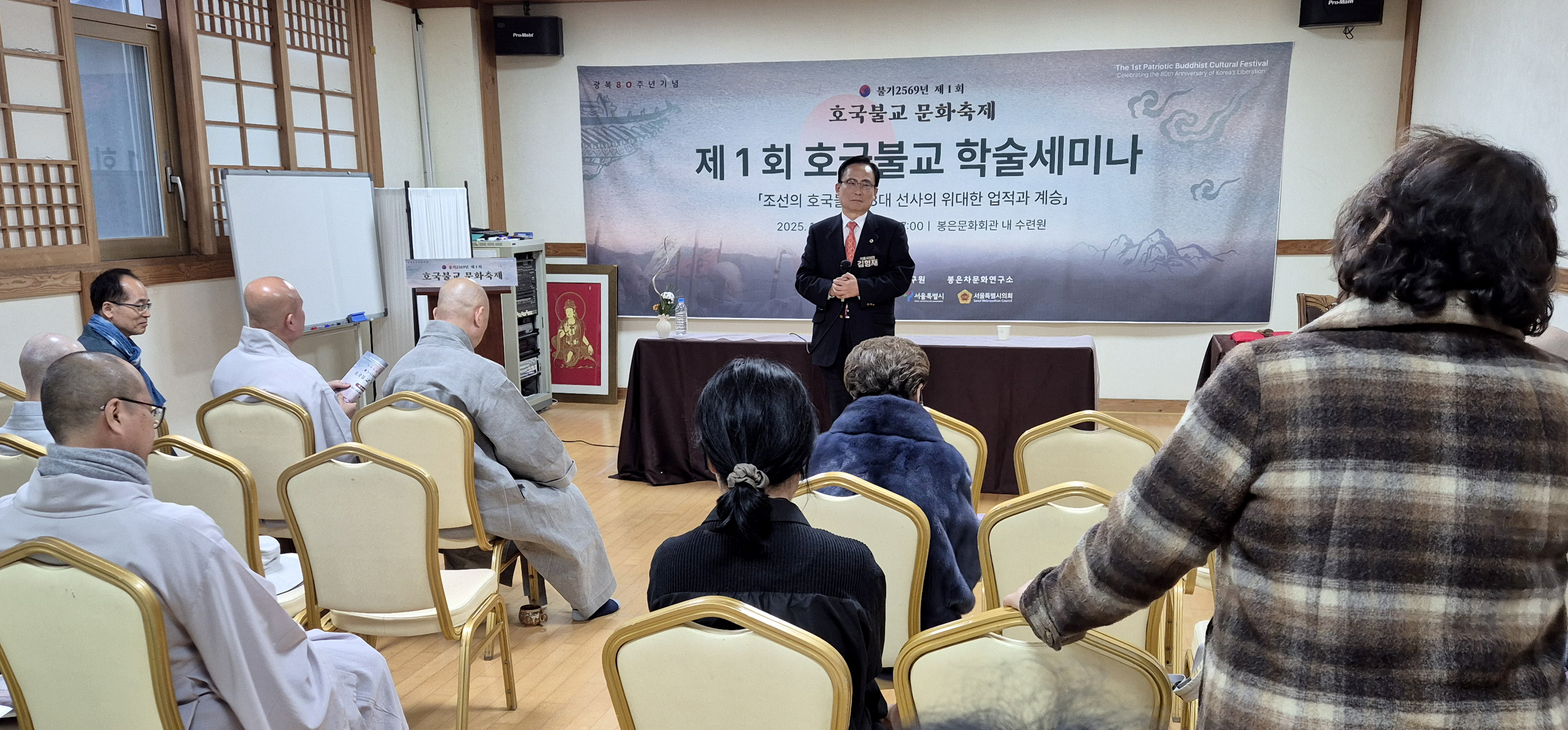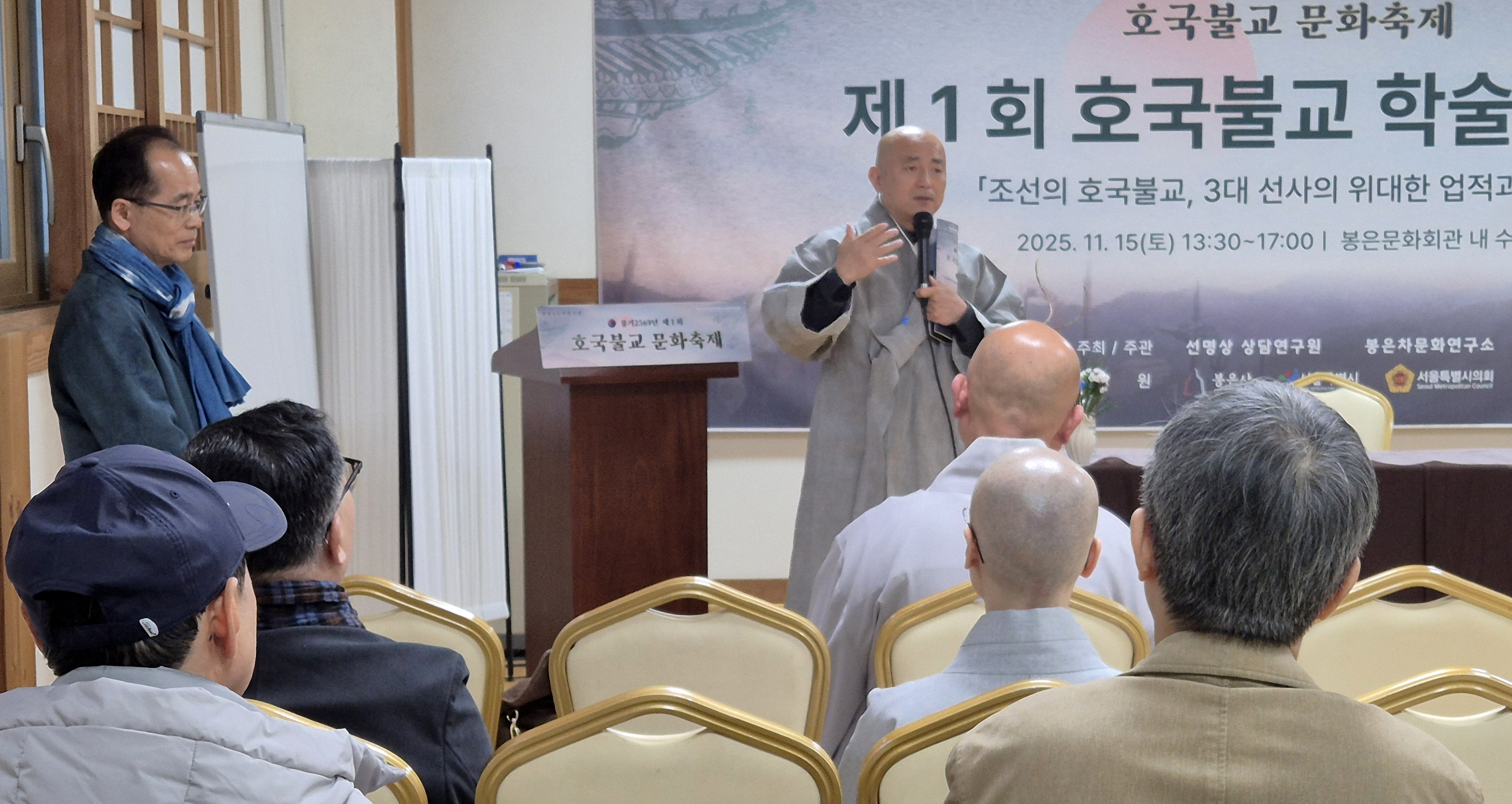 광복80주년 기념 <제1회 호국불교 학술세미나>가 2025년 11월 15일(토) 오후 1시 30분부터 서울 봉은사(주지 원명스님) 수련원에서 열렸다.