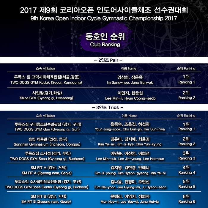 2017. 제9회 코리아오픈 인도어사이클체조 선수권대회 (마스터 체조.2인조) | ||||