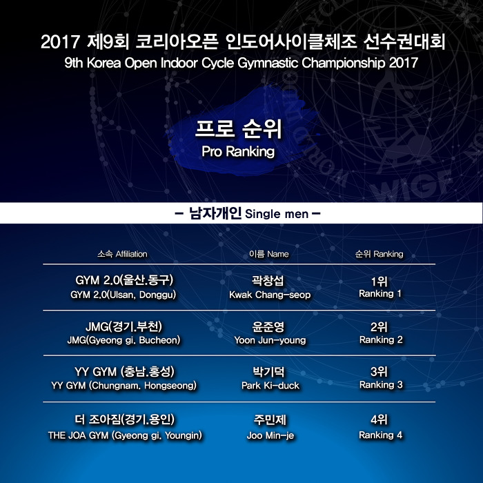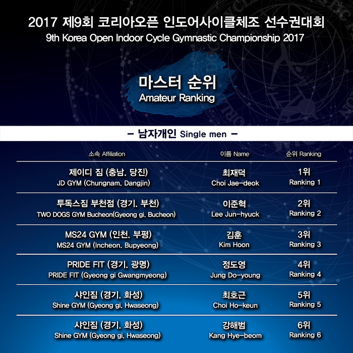 2017. 제9회 코리아오픈 인도어사이클체조 선수권대회 (프로 체조.남자개인) | ||||