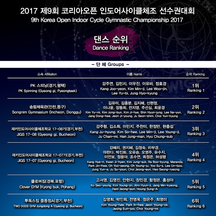 9th KOREA OPEN INDOORCYCLE GYMNASTIC CHAMPIONSHP 2017 (Dance.Groups) | ||||