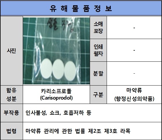 [마약류]카리소프로돌(Carisoprodol)(-/-/정제/원형/백색/-) 작성자이재원|작성시간14.10.29|조회수395 목록 댓글 0 글자크기 작게가 글자크기 크게가 다음검색 현재 게시글 추가 기능 열기 북마크 공유하기 신고 센터로 신고 댓글 댓글 0 댓글쓰기 댓글 리스트