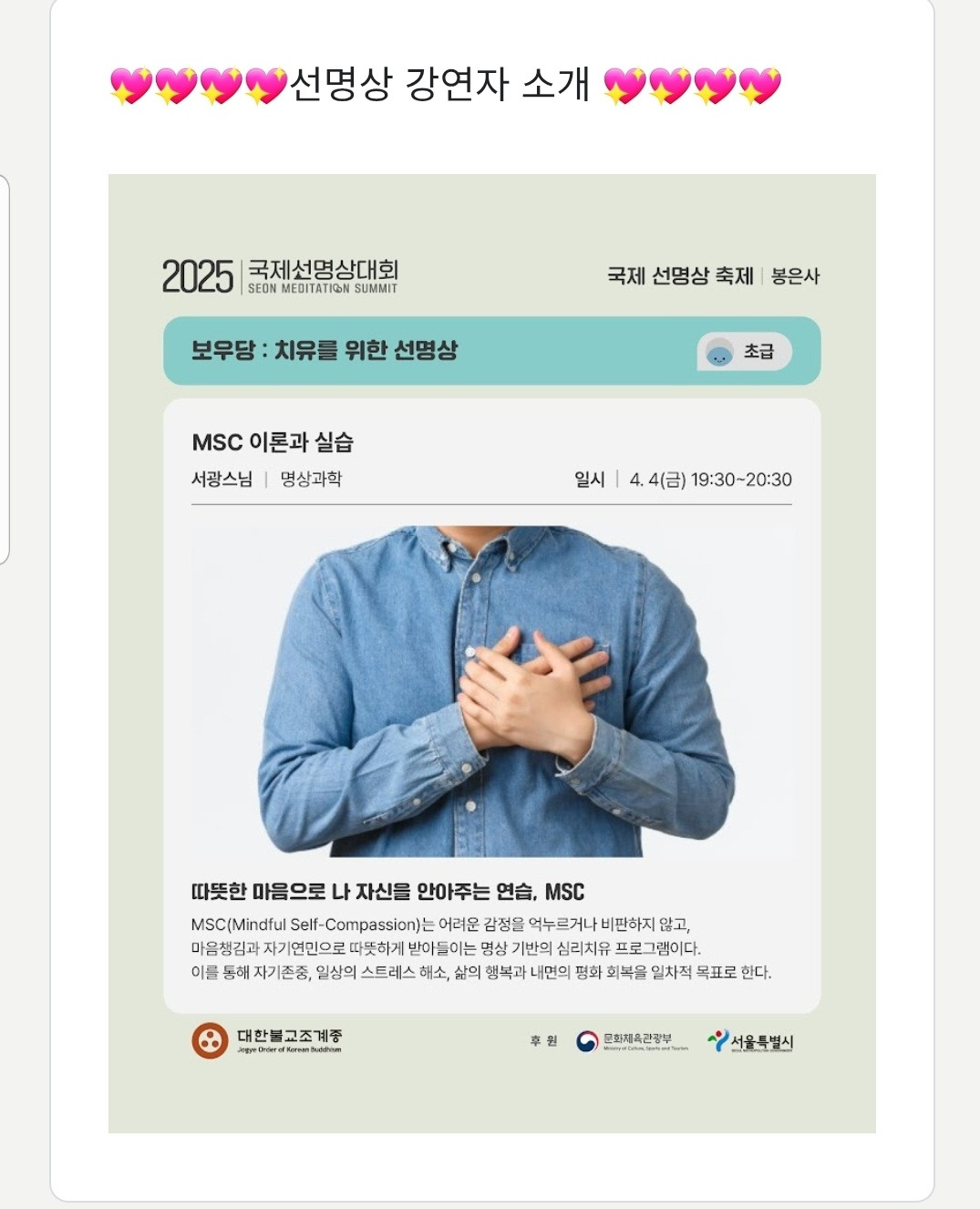 따뜻한 봄날과 더불어 여러분에게 마음챙김-자기연민의 따뜻한 시간으로 안내해드릴 시간이 될 것입니다.