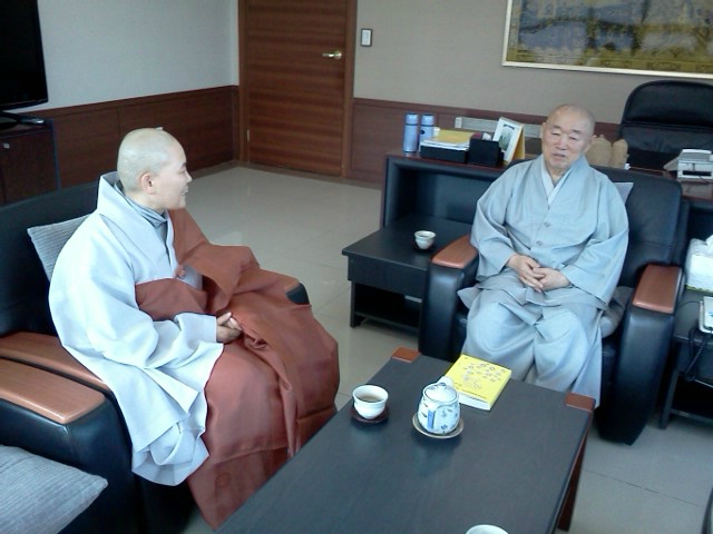 불교 TV 회장이신 성우스님과 법회를 마치시고 다담을 나누고 계십니다.