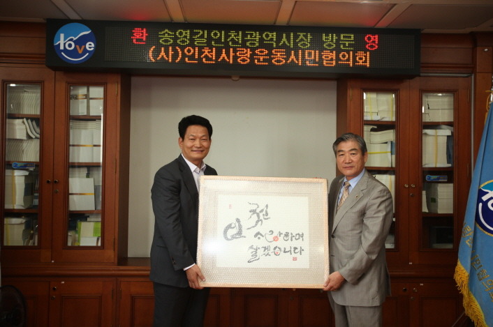 송시장님께 인천사랑운동에 앞장 서주십사 하는 의미로 액자 전달
