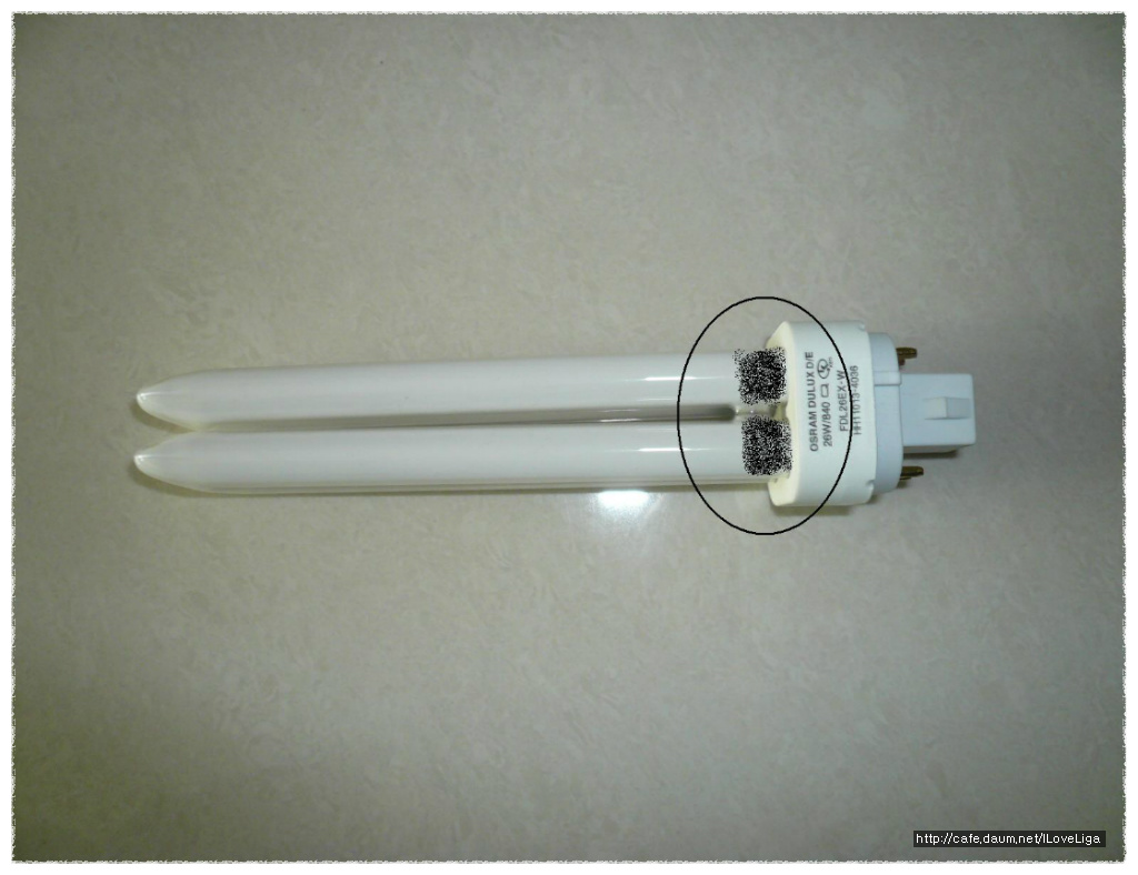 (3) 형광등을 분리해보시면 표시되어진 부분이 검게 변해있으면 교환시기가 다되었다고 판단하시면 됩니다.