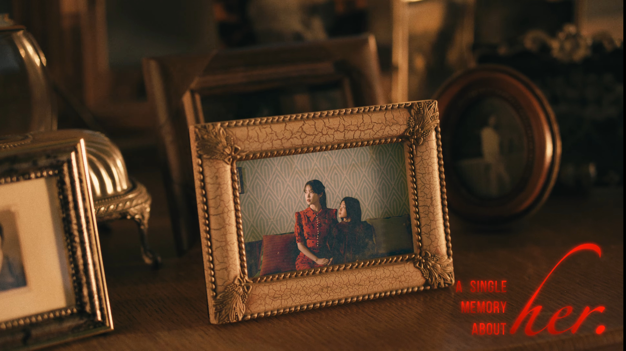 그리고 카메라는 선반의 액자들로 시점을 옮겨지고 이전부터 이어진 모든 그녀들의 사진을 비춘다.