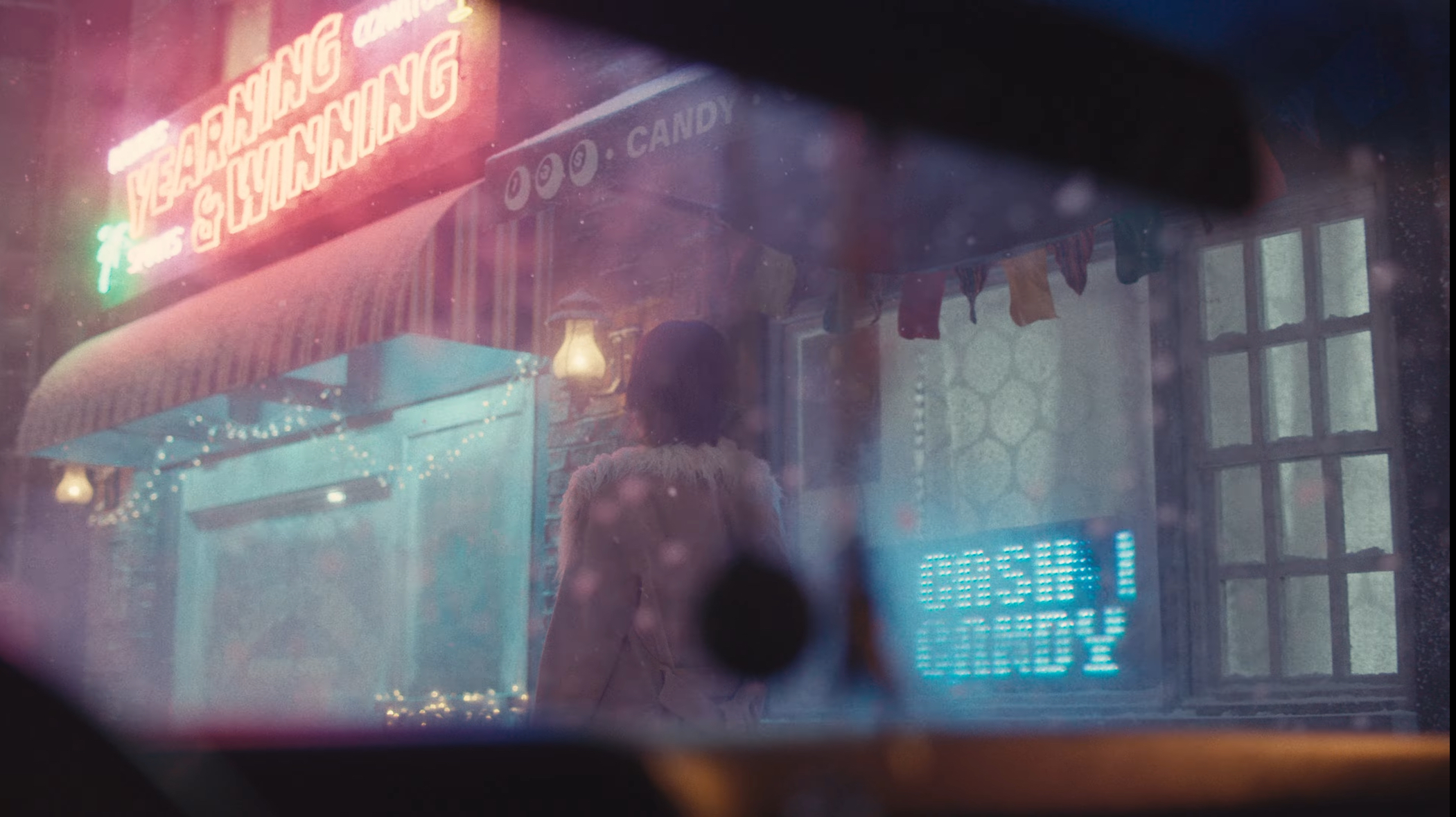 그 시선 느끼지 못하고 S가 가고자 하는듯한 상점 간판의 네온싸인은 The Winning 앨범의 대주제가 되는 "Yearning & Winning(동경&승리)".
