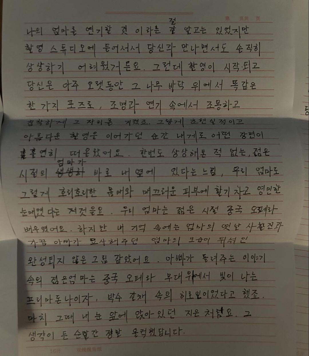 아이유에게 전한 탕웨이님의 편지 속에서 설명한 ‘그녀(H)와 눈동자가 닮은 그녀의 엄마(S)’가 조우하는 장면이다.