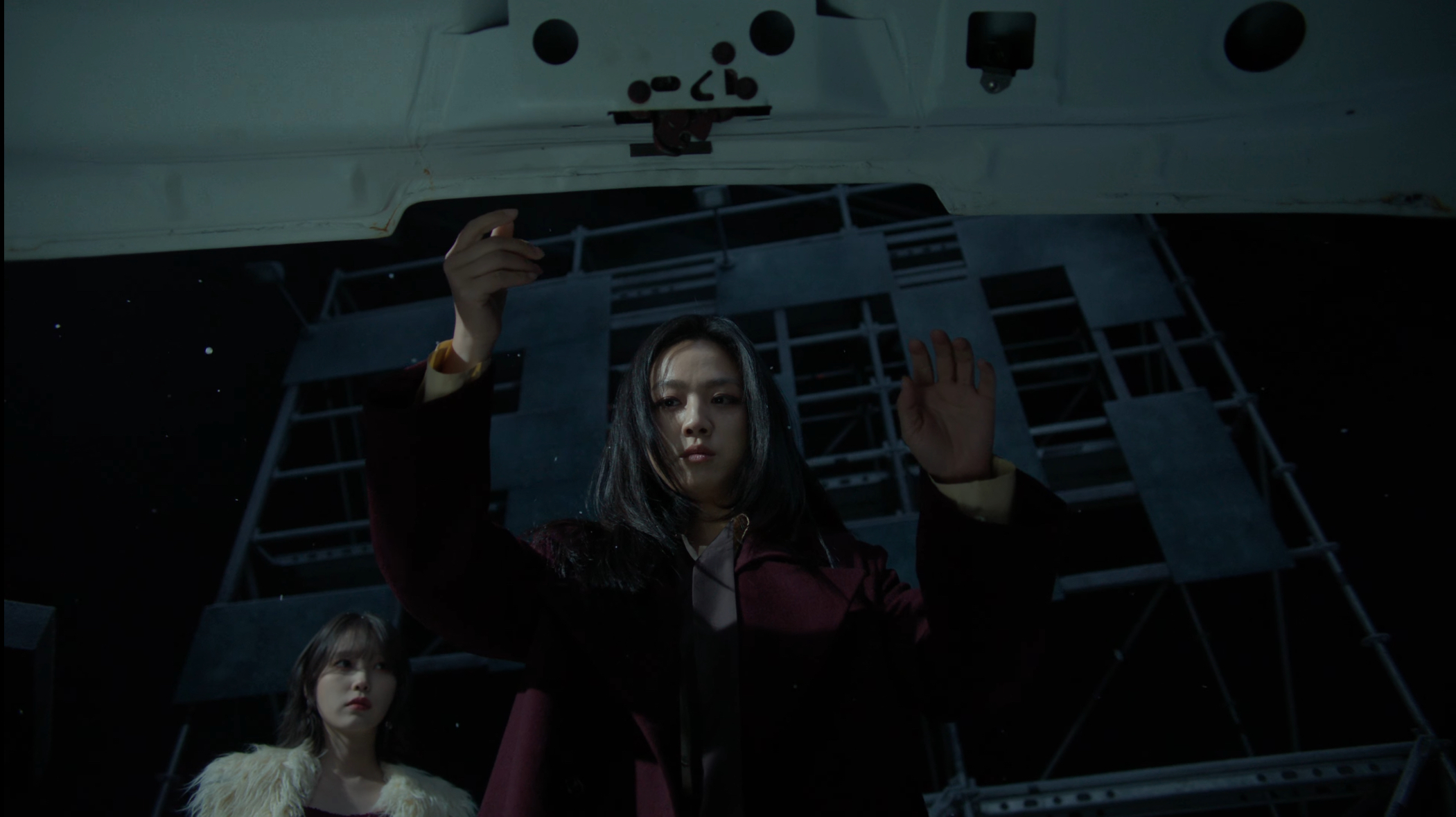 이 부분에서는 “Shh..”의 보컬이 10대(혜인), 30대(아이유), 50대(조원선), 그리고 80대(패티김) 그녀들로 이루어져있다는 점을 다시 상기시킨다. “Shh..“의 보컬들 중 어린 H를 가장 잘 표현할 수 있는 08년생의 그녀, 혜인. 팔레트에 나와서 아이유의 데뷔년도에 태어났다고 말해 유애나들을 적잖히 놀라게 했던 혜인(H)는 아이유(S)를 보며 자라왔고 같은 아티스트로써 그 궤도를 따라가고 있다는 점에서 이 장면의 메타포는 현실과 뮤비, 노래 세가지가 유기적으로 얽혀있다고 볼 수도 있을 것이다.